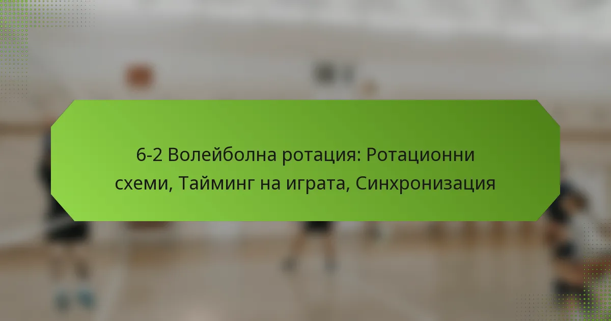 Синхронизацията в 6-2 волейболна ротация е от съществено значение за ефективната работа в екип и безпроблемното изпълнение на играта. Тя включва координиране на движенията и действията на играчите, за да се осигури, че атаката и защитата функционират плавно, максимизирайки възможностите за отбелязване и минимизирайки грешките.