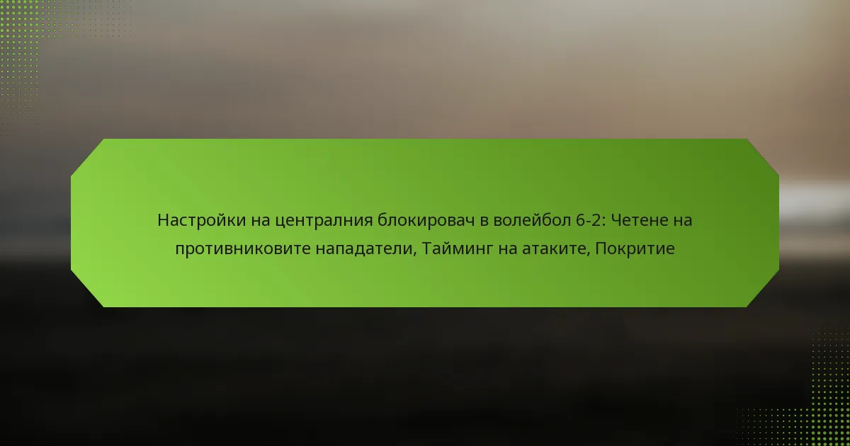 Средният блокировач в система 6-2 за волейбол играе ключова роля както в защитата, така и в атаката. Неговите основни отговорности включват четене на противниковите нападатели, временно атаките и осигуряване на покритие за съотборниците. Разбирането на тези роли подобрява динамиката на отбора и общото представяне на игрището.
