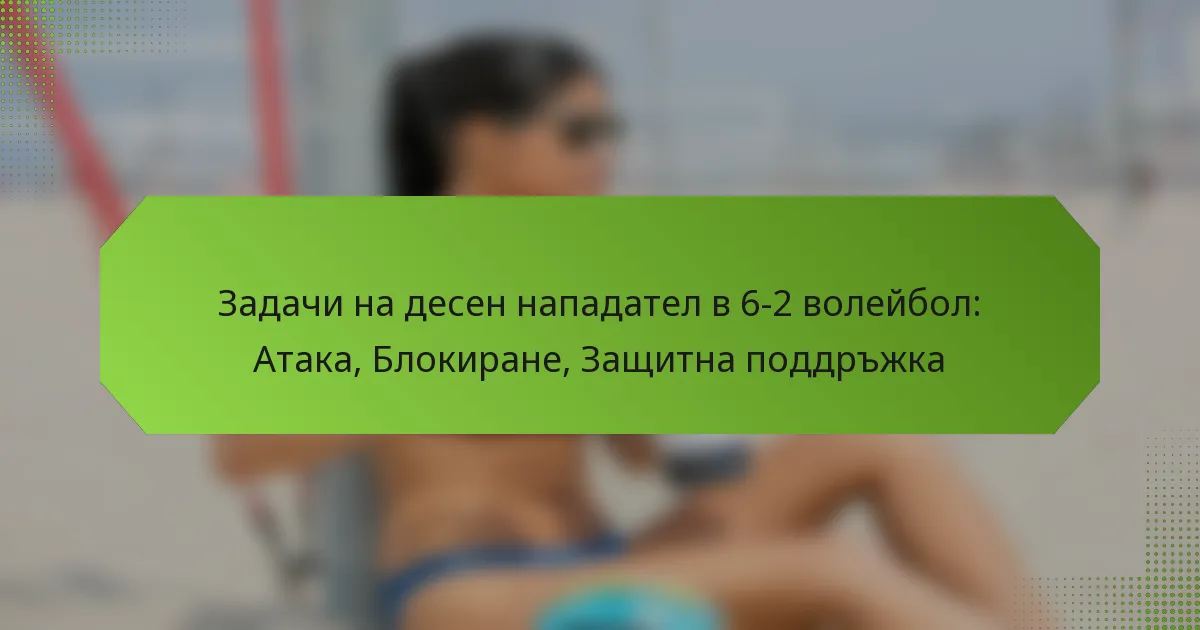 Основните отговорности на играча на дясната страна в системата 6-2 по волейбол включват атакуване от дясната страна, блокиране на противниковите нападатели и предоставяне на защитна подкрепа. Тази позиция изисква комбинация от офанзивни и дефанзивни умения, с акцент върху работата в екип и ситуативната осведоменост.