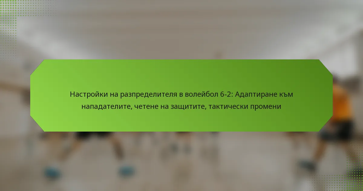 Настройки на разпределителя в волейбол 6-2: Адаптиране към нападателите, четене на защитите, тактически промени